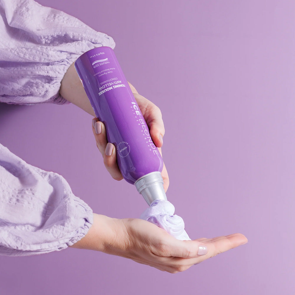 Shake Natural Look Silver Screen Ice Blonde Conditioning Mousse well before use. Apply the product to clean towel-dried hair, but add to the porous ends and front hairline last. For colour refreshing and toning, leave on for 3-5 minutes. For intense colour and deep conditioning, leave on for 15 - 20 minutes. Rinse and condition the hair if required.