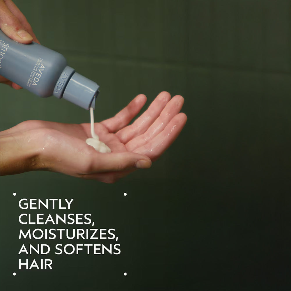 The Aveda Smooth Infusion™ Anti-Frizz Shampoo 200ml is a 95% naturally derived, 100% vegan formula engineered to provide intensive smoothing and humidity defense starting in the shower. This silicone-free cleanser marks a new era in anti-frizz technology, utilizing a Plant Polymer Shield and a Botanical Smoothing Oil Blend. The plant-derived polymers create an invisible, breathable veil over the hair fiber, locking out external moisture and preventing the "swelling" of the cuticle that leads to unwanted frizz.