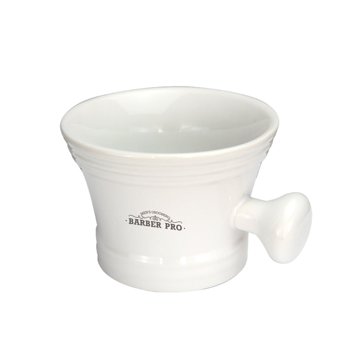 Barber Pro Shaving Mug made from porcelain is both elegant and functional. This shaving mug for soap and other shaving products has a wide lip complemented by short sides, ideal for lathering activities. The handle of this mug is comfortable, making lifting and holding easier. While made from dense porcelain, it is lightweight and does not weigh heavily on the hand.