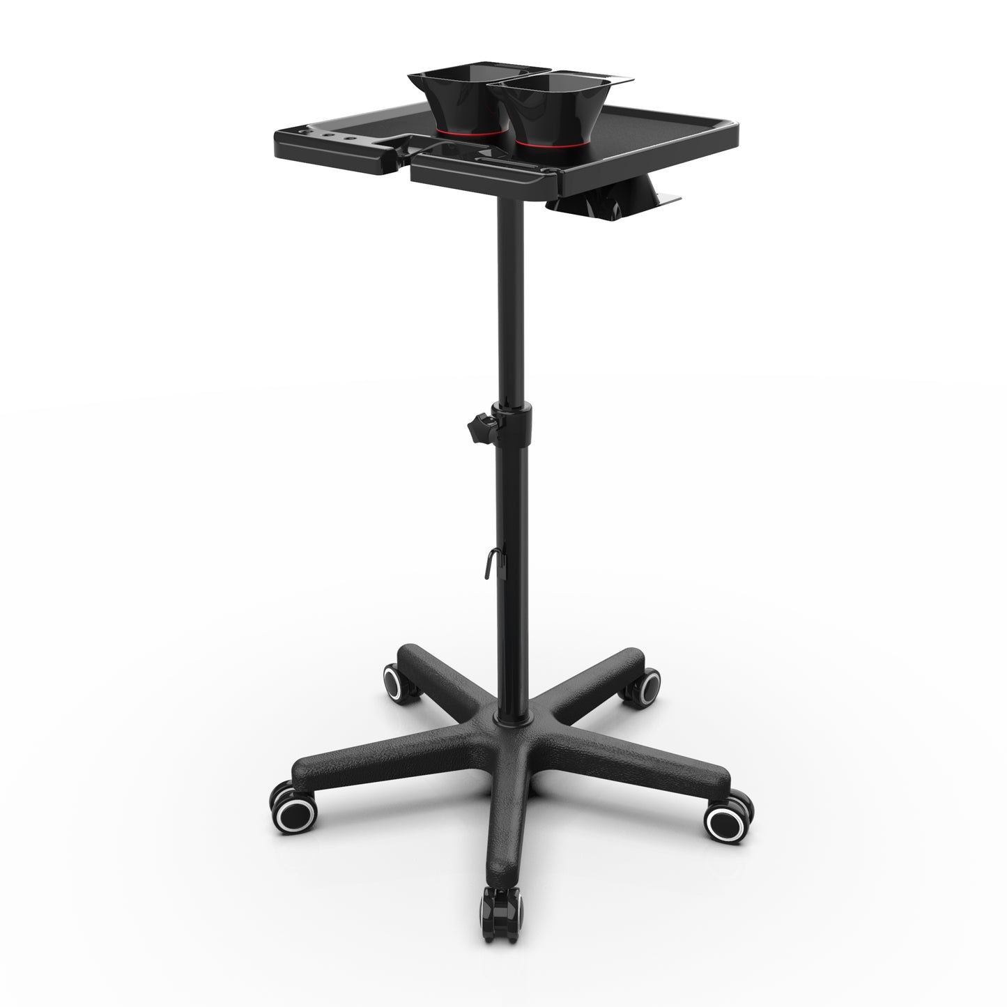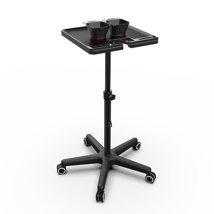 There are many other ways to upgrade your workspace using Beauty Supply Co. Service Tray + Magnetic Bowls Black. The built-in plug holder is suitable for many types of electrical plugs, and the universal hairdryer holder can fit all your favourite hair dryers, including Dyson. Another perk is the patented rolling wheels for noiseless and hair-resistant mobility.