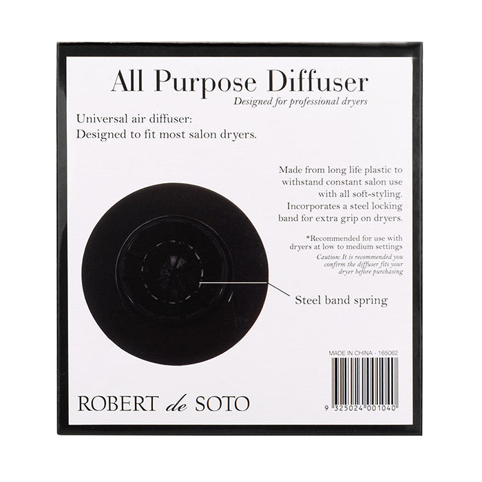 Designed to soften and diffuse your dryers airflow. Fingers lift and separate hair bringing out its natural texture and promote curl formation without the frizz! Universal fit, attaches to most professional dryers. Features a steel locking band for extra grip on dryer. Ideal for curly, wavy or permed hair.