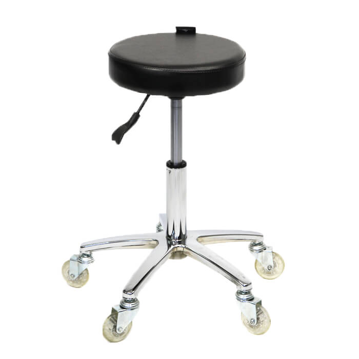 The Glammar black round stool is perfect for hairdressing salons & countless other professions, comfortable thick padding & durable vinyl combined with first class 3-inch whisper glide wheels, on a superior quality AAA grade aluminium cast base & chrome gas-lift, provides a safe, stable operator assistant.