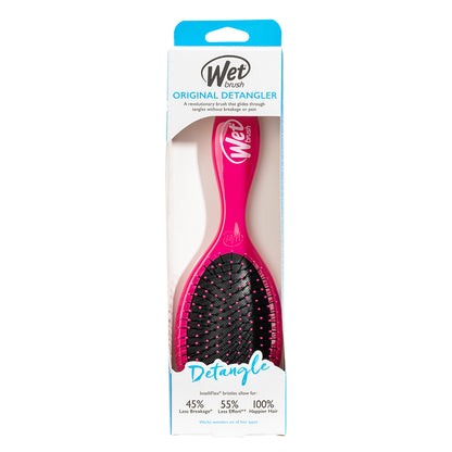 WetBrush Detangling Brush is America's favourite! Available in bright pink, this detangler glides through knots and tangles with effortless ease. The secret is in the exclusive, ultra-soft IntelliFlex bristles, designed to gently diffuse tangles on all hair types, wet or dry. WetBrush Detangling Brush lets you brush with less force, resulting in less damage. Ergonomic grip for comfort.