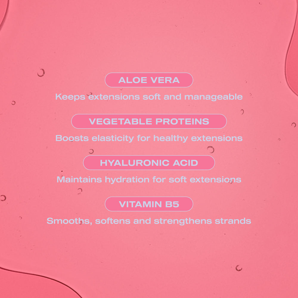 - Keeps your extensions looking soft, bouncy, and hydrated, so they’re always on point.