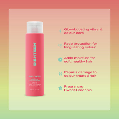 Stay bold, bright, and in control with the E18HTEEN Vibe Check Colour Duo – the perfect pair to protect and extend your colour while keeping your hair smooth, shiny, and full of life. This vibrant duo includes the Vibe Check Colour Shampoo 375ml and Vibe Check Colour Conditioner 375ml, specially formulated to maintain colour vibrancy and prevent fade.