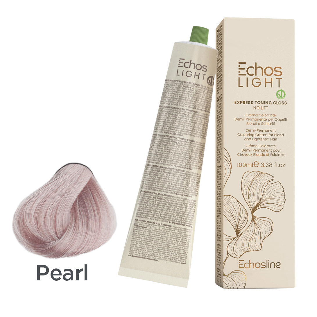 Echos Color Vegan Light Toning Gloss Pearl is designed to elevate lightened and bleached types of hair. This demi-permanent toner adds delicate pearl platinum tones to neutralise unwanted warmth. As a result, Echos Color Vegan Light Toning Gloss Pearl creates a refined and polished appearance without lifting natural colour.