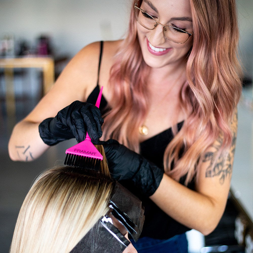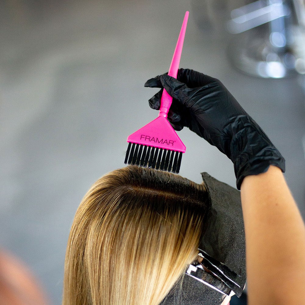 Perfect for balayage, root shadows, and global applications, these brushes allow you to cut down application time without sacrificing precision. The tapered bristles hold plenty of product while distributing colour smoothly from roots to ends.
