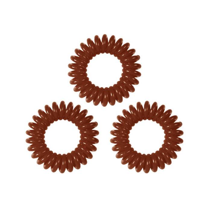When this hair ring is wrapped around the hair, it places uneven pressure around the circumference of the ponytail or a bun. Standard hair rings put even pressure on the hair, leaving an obvious mark. The Tangle Ties peculiar telephone shape eliminates this.