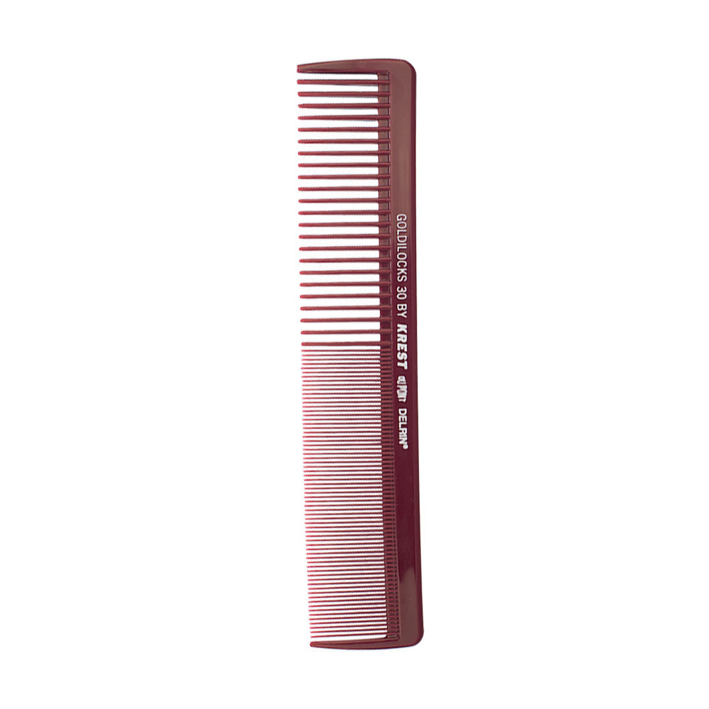 Elevate your hairdressing game with Goldilocks Krest G30 Extra Large Hair Cutting Comb 19cm. This expertly crafted tool is divided into two halves: one with generously spaced teeth and one with tightly spaced teeth. Although these can be used for detangling, the main purpose is creating tension for thicker or finer hair, which promotes an easier cutting experience for hairdressers