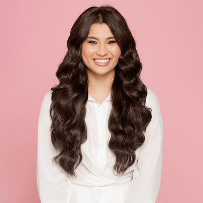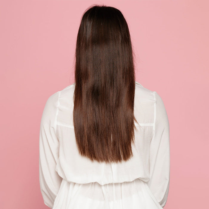 Crafted from 100% premium Remy human hair, these 20" clip-ins deliver luxurious length and silky movement with a seamless finish. The flexible, lightweight wefts sit flat against the scalp for a discreet look and all-day comfort — making them ideal for both everyday wear and special occasions.
