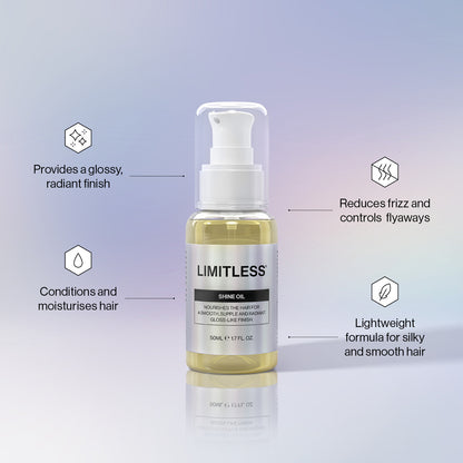 - Shine Oil: For the ultimate finishing touch, the Shine Oil adds a gorgeous, luminous glow to your colour-treated hair. This lightweight, non-greasy oil enhances natural shine, tames flyaways, and provides a smooth, silky finish. Formulated to nourish and protect your colour, it helps prevent dullness and dryness, keeping your hair looking radiant, soft, and glossy after every use.