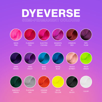 - Customisable—mix shades together or dilute with DyeVerse Clear for endless possibilities