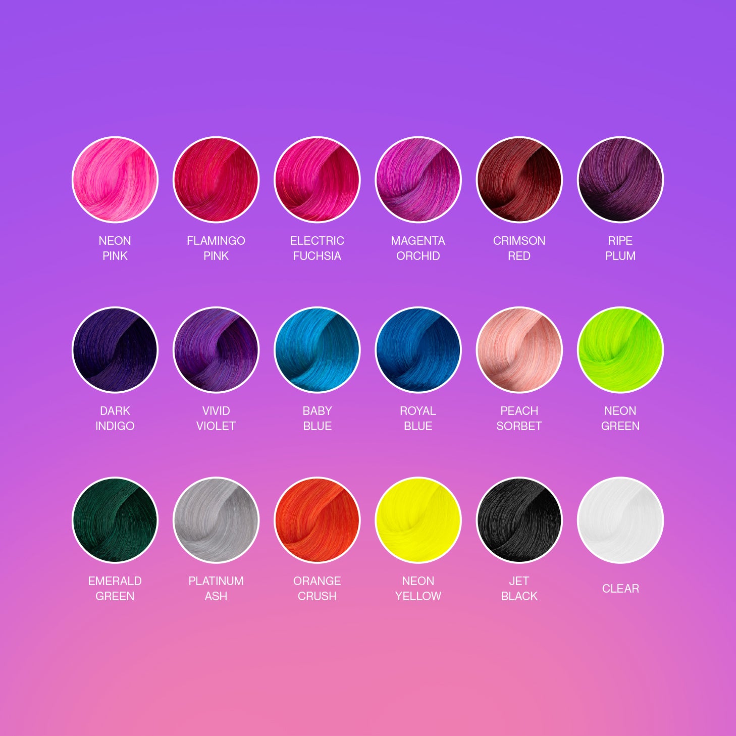 Whether you’re new to direct dyes or expanding your creative colour services, the DyeVerse Starter Pack ensures you have the full colour spectrum at your fingertips. From vivid brights and intense neons to softer pastel tones and mixers, this all-in-one collection allows you to deliver bespoke colour results for every client, trend, and technique.
