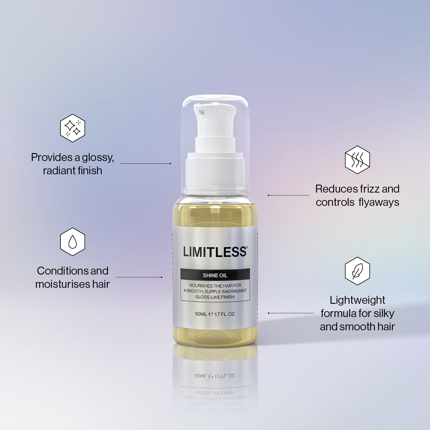 Shine oil: Finish your repair routine with the Shine Oil, a luxurious, nourishing oil that adds instant shine and smoothness to your hair. It helps seal in moisture and lock out environmental stressors, leaving your hair glossy, frizz-free, and healthier-looking. Lightweight and non-greasy, this oil gives your hair a polished, radiant finish without weighing it down.