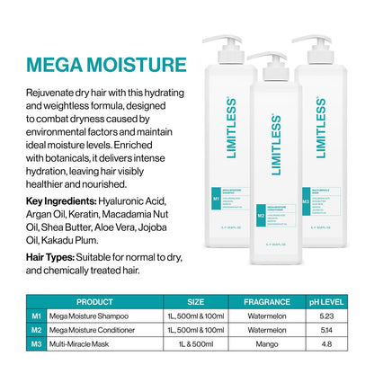 - 2x Limitless M1 Mega Moisture Shampoo 500ml