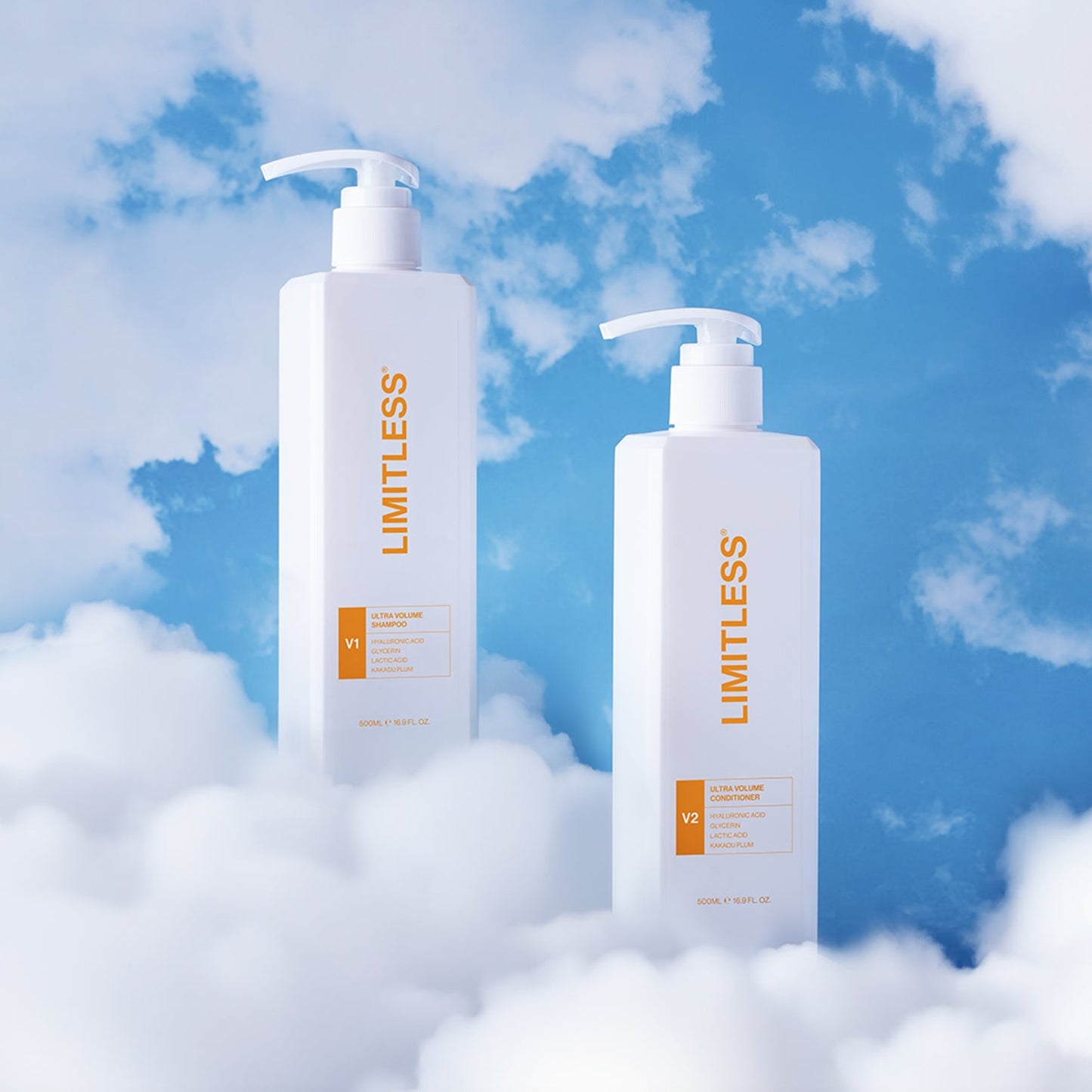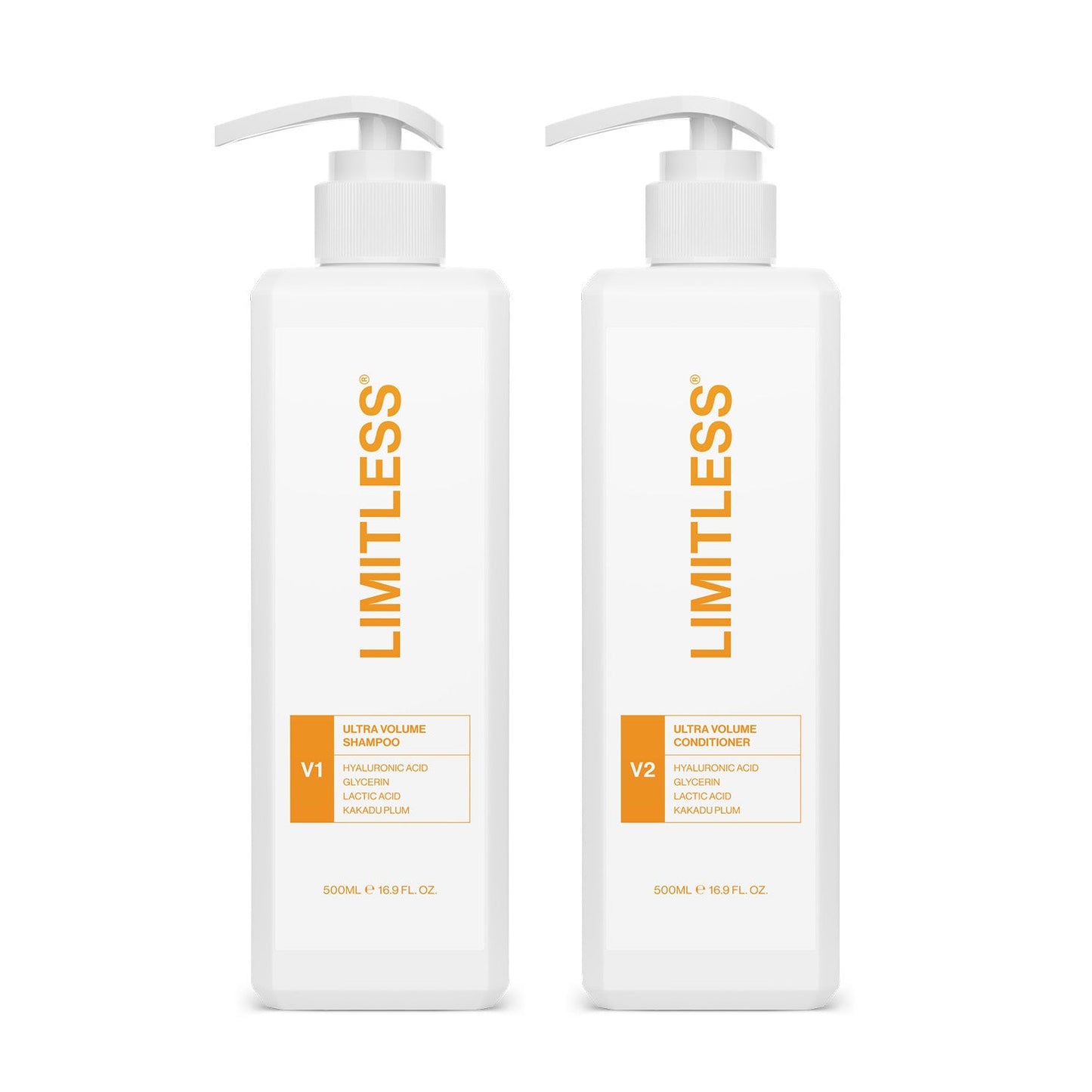 Limitless Ultra Volume Duo Pack features two key products: Limitless V1 Ultra Volume Shampoo and Limitless V2 Ultra Volume Conditioner. These are designed to improve fullness without weighing down the hair.