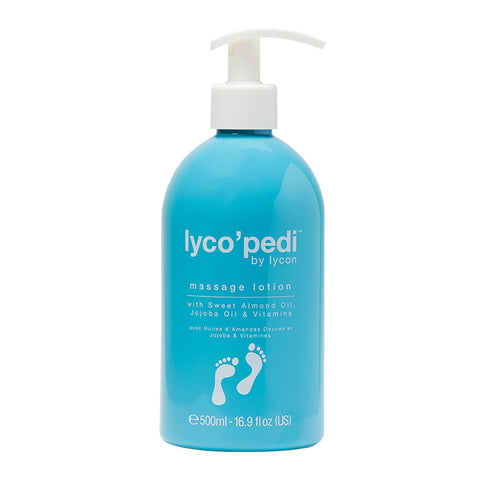 Lemon Tea-Tree and Peppermint essential oils refresh and fight odours. Marine Collagen for smoothing hydration, Pro-Vitamin B5, Vitamin E to soothe and moisturise and premium natural massage oils including Coconut, Sweet Almond and Jojoba. lyco’pedi Massage Lotion does not contain Soybean, Canola or Mineral Oils.