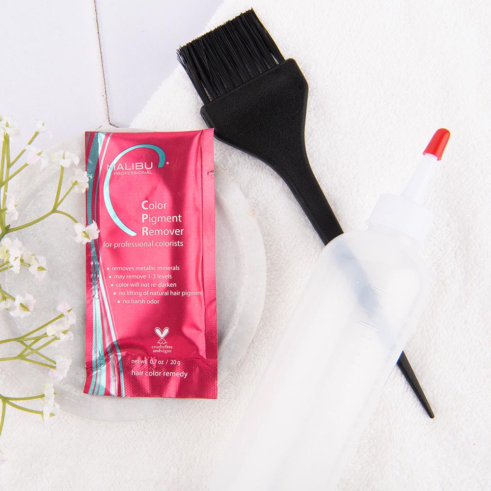 Make colour correction easier with Malibu C Colour Pigment Remover. This hairdressing essential will eliminate unwanted pigment from oxidised hair colour. In fact, the innovative antioxidant vitamin complex can remove up to three levels of colour deposited with up to 20-volume developers. Best of all, the ready-to-mix crystals activate on the spot, which means effortless applications for both professional and at-home users.