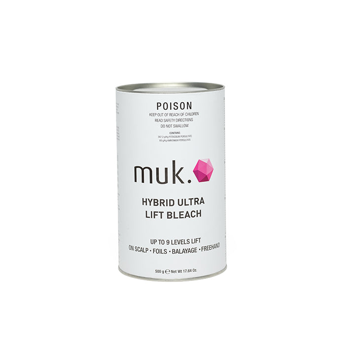 Muk Hybrid Ultra Lift Bleach is designed to produce clean and clear lightening results with up to 9 levels of lift whilst helping to maintain the health and integrity of the hair.