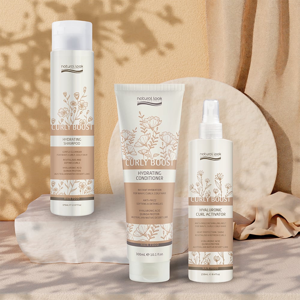 To complement the shampoo, do not miss Natural Look Curly Boost Hydrating Conditioner. The high moisture content from the signature hyaluronic acid is perfect for wavy, curly and coily hair. These textures will appreciate the incredible smoothness, softness and bounciness with less chance of tangles.