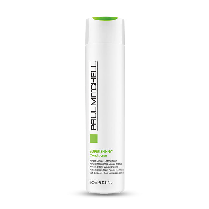 Smooth and soften hair every time you condition with Super Skinny Conditioner from Paul Mitchell. This daily conditioner smoothes frizz and softens strands while heat-activated conditioners and thermal protectants help repair hair and prevent surface damage. Exclusive Super Skinny Complex helps reduce drying time for faster styling to get you out the door quicker.