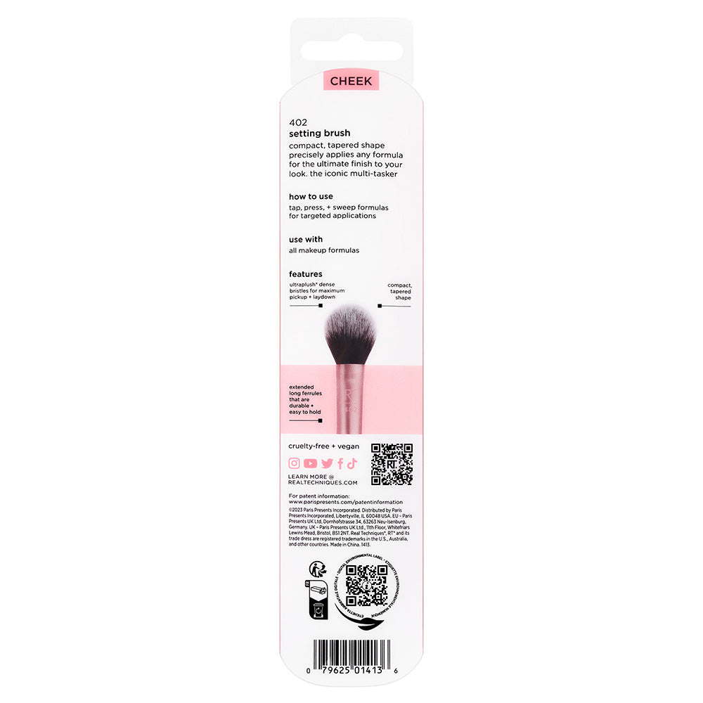 The Real Techniques Setting Brush is a professional-quality precision makeup brush designed for targeted powder application, highlighting, and detailed finishing work. Featuring a soft, tapered brush head, this versatile tool allows controlled placement of product to set makeup while maintaining a natural, flawless complexion.