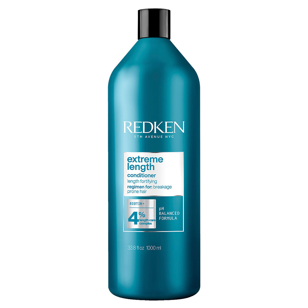 Redken's Extreme Length Conditioner, infused with biotin and castor oil, is designed to strengthen and fortify damaged hair while reducing breakage, helping clients achieve their ultimate hair length goals. This powerful conditioner works in synergy with the Extreme Length Shampoo to promote stronger, healthier hair and support up to 6 inches of growth in one year.