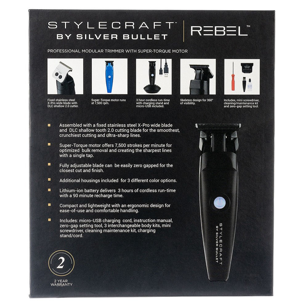 Unleash the power of precision with the StyleCraft by Silver Bullet Rebel Hair Trimmer. Engineered for barbers and stylists who demand the best, this professional modular trimmer features a super-torque motor running at 7,500 RPM, delivering exceptional bulk removal and razor-sharp lines in just one pass.