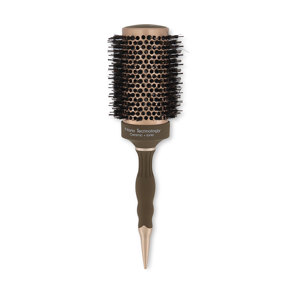 A unique combination of nylon and natural boar bristles allows for superior grip and tension, making it easier to control and shape the hair while enhancing smoothness and reducing frizz. The large 53mm barrel is ideal for long hair or for creating soft waves and big, bouncy volume.