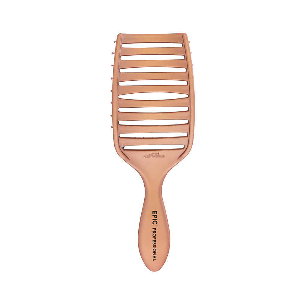 WetBrush Epic Deluxe Quick Dry Brush Rose Gold makes blow drying hair fast and easy. Heat resistant up to 230 degrees, the open vented design of this brush channels more hot air to the hair, speeding drying time by up to 30%. The contoured shape hugs the scalp, while the ergonomic handle provides comfort and control. Ideal for blow drying and applying products such as keratin hair treatments.