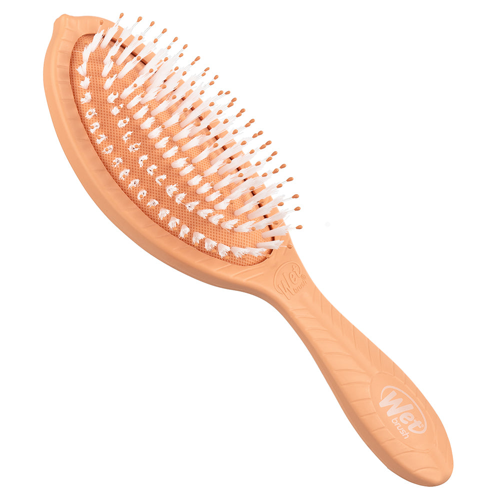 The Wet Brush Go Green Treatment & Shine Brush – Coconut Oil Cushion is designed to nourish, detangle, and add shine while being environmentally friendly. This biodegradable brush is infused with Coconut Oil, helping to condition and hydrate hair with every stroke. The built-in natural oil treatment distributes evenly throughout the hair, leaving it sleek, smooth, and radiant. Featuring cruelty-free synthetic boar bristles and ultra-soft IntelliFlex® bristles, it glides effortlessly through tangles with 45 percent less breakage and up to 55 percent less effort.