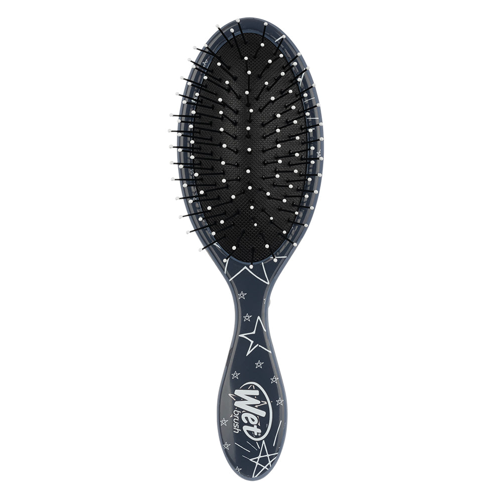 Specially sized and shaped to fit a child's hand, the WetBrush Kids Detangler Hair Brush is designed to make brushing a breeze for little ones. Featuring exclusive IntelliFlex bristles, it loosens knots and tangles on both wet and dry hair without pulling or snagging. This brush lets kids brush with less force, minimizing pain and damage to their hair. With its kid-friendly design and ergonomic grip, brushing becomes less of a hassle, making it a fun experience! Say goodbye to hair brushing tears with this limited edition print.