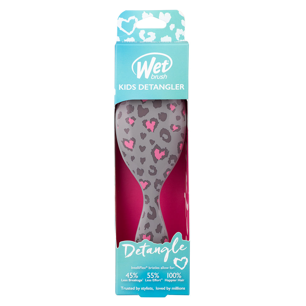 Specially sized and shaped to fit a child's hand, the WetBrush Kids Detangler Hair Brush is designed to make brushing a breeze for little ones. Featuring exclusive IntelliFlex bristles, it loosens knots and tangles on both wet and dry hair without pulling or snagging. This brush lets kids brush with less force, minimizing pain and damage to their hair. With its kid-friendly design and ergonomic grip, brushing becomes less of a hassle, making it a fun experience! Say goodbye to hair brushing tears with this limited edition print.