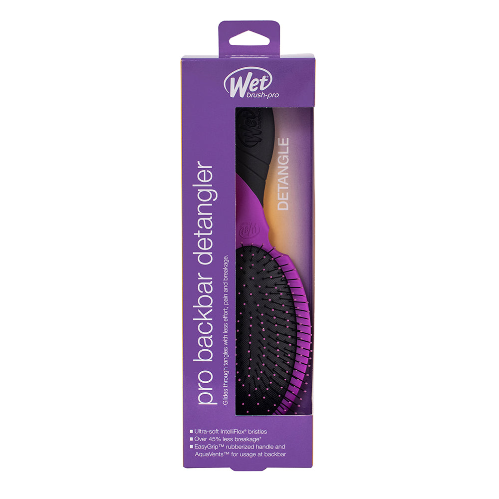 Based on America’s favorite WetBrush Original Detangler, the WetBrush Pro Backbar Detangler Hair Brush in pink is optimized for applying hair color, treatments, and tackling all your wet hair needs. Featuring the exclusive AquaVent design, this brush allows water to drain out for easy cleanup. The larger cushion area ensures faster, gentler detangling, while the rubberized EasyGrip handle provides a secure hold, even with wet hands. Designed to glide through tangles without pulling, tugging, or damaging hair, this brush is a must-have for any hair care routine.