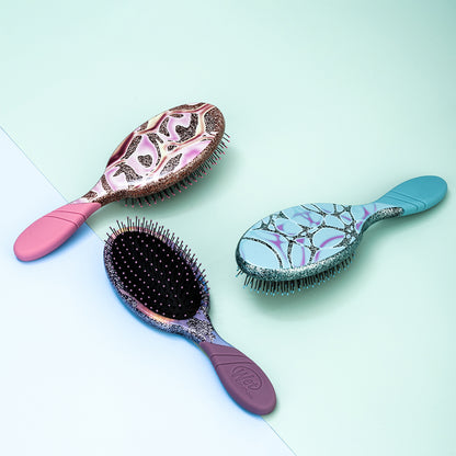 Cosmic Lava for fast detangling. The WetBrush Pro Cosmic Lava Detangler Hair Brush is redesigned by stylists for stylists, this brush helps hair stay strong and healthy-looking. Exclusive IntelliFlex bristles loosen knots and tangles on wet or dry hair, without pulling or snagging. Ergonomically advanced design features finger rests and rubberised EasyGrip handle for more comfort and control, even with wet hands. With vibrant, glittery pattern, this is truly an inspiring detangler.