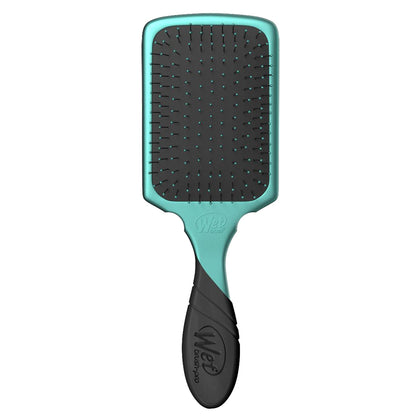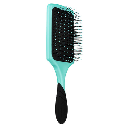 The Wet Brush Pro Paddle Detangler Brush effortlessly detangles and removes snags, minimizing pain and breakage. Designed to glide smoothly through all hair types and textures, this brush features an expanded cushion area that ensures faster detangling. IntelliFlex® bristles gently work through knots, while the AquaVent™ design allows for fast water drainage and easy cleanup. Its ergonomic design, complete with finger rests and a rubberized EasyGrip™ handle, provides enhanced comfort and control during use. Perfect for real and synthetic extensions, this brush offers versatile performance with every stroke.