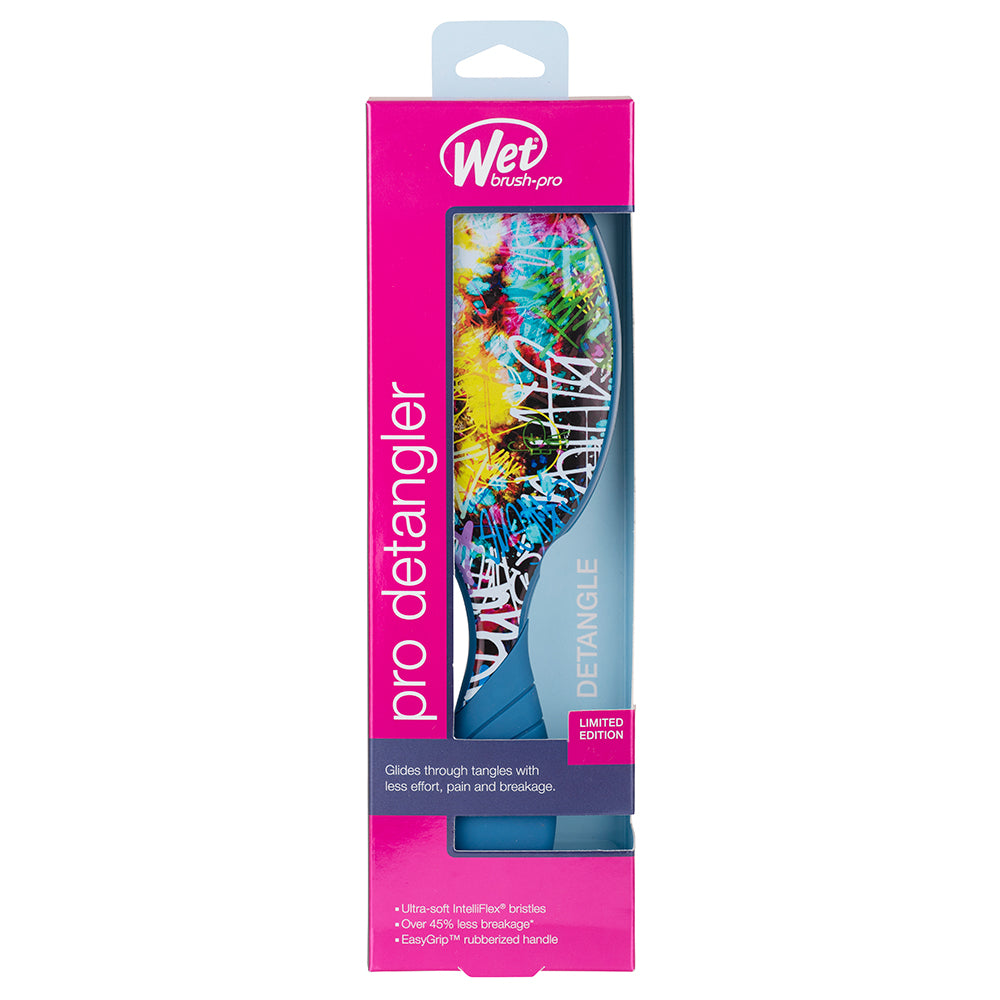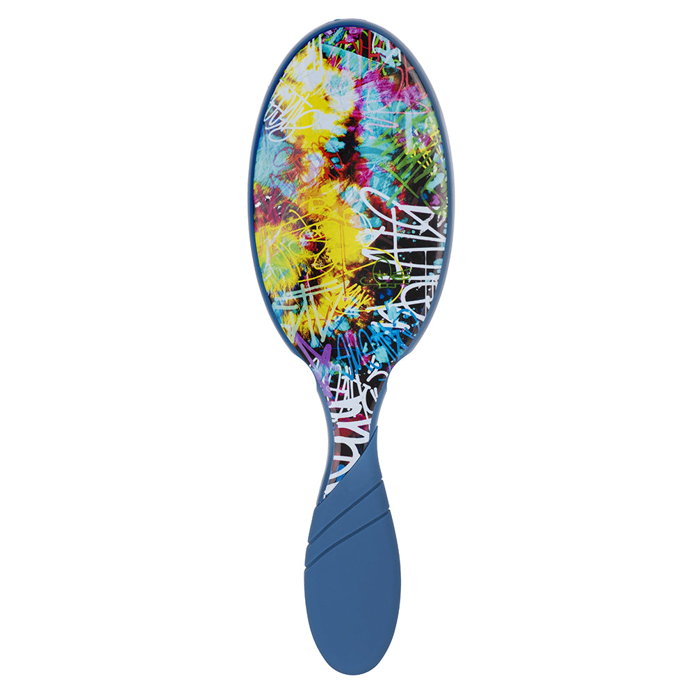 The WetBrush Pro Street Art Detangler features a stunning, limited edition pattern inspired by street art. This award-winning, world-famous Original Detangler is redesigned by stylists for stylists. Its revolutionary IntelliFlex bristles diffuse knots and tangles on all hair types, wet or dry, gliding through with less effort, pain, and breakage. The ergonomic design, featuring finger rests and a rubberised EasyGrip Handle, ensures comfort and control.